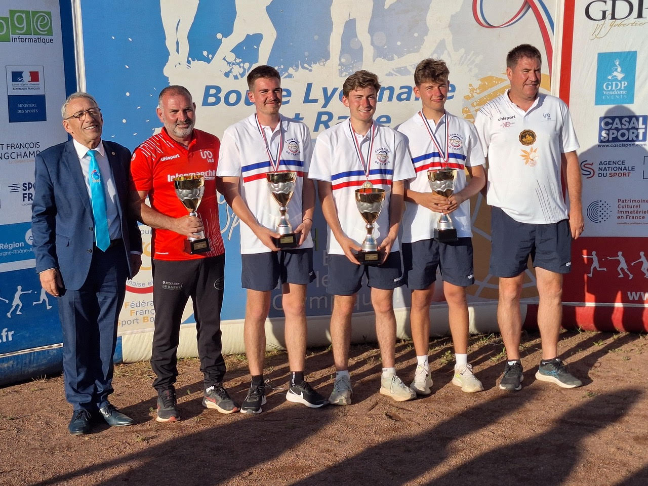 Loick Nury, Jules Arnaud et Hugo Vernet champions de France U18.